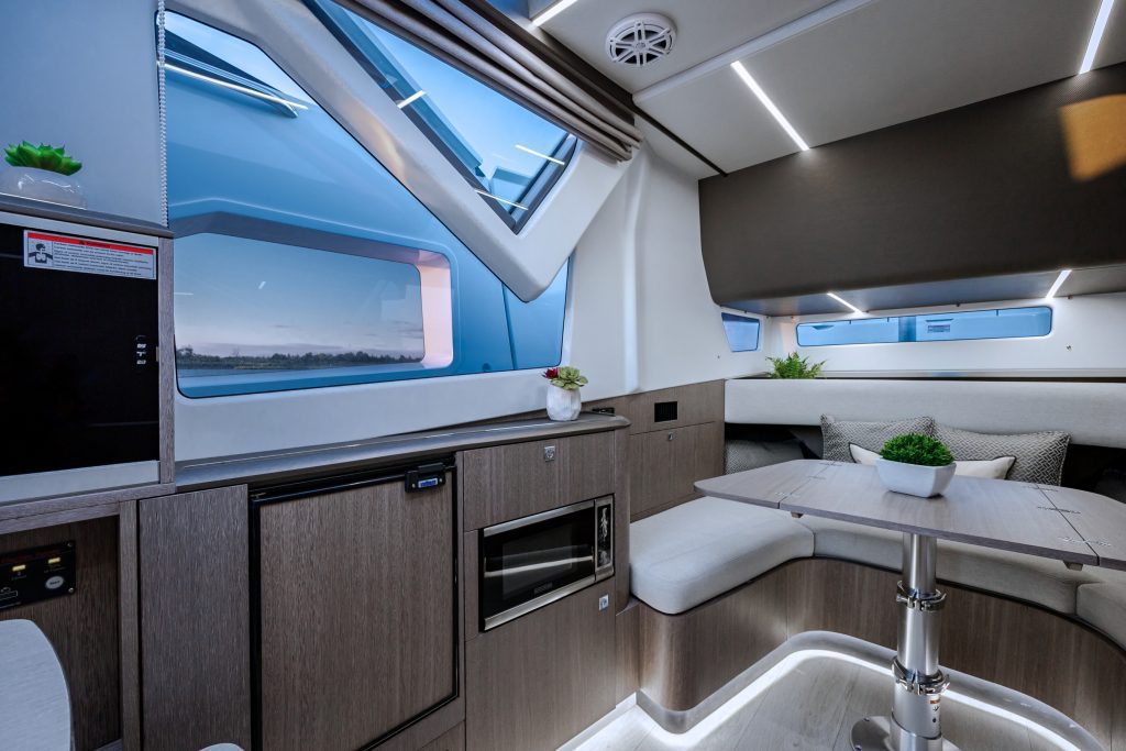 Retreat below deck to a fully air-conditioned, beautifully refined cabin with premium finishes.