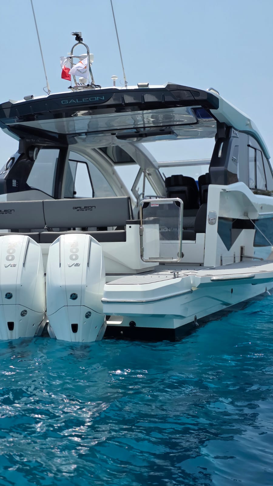 Command the Mediterranean aboard The Angelica. Discover the breathtaking space and bold design of our flagship Galeon 375 GTO.